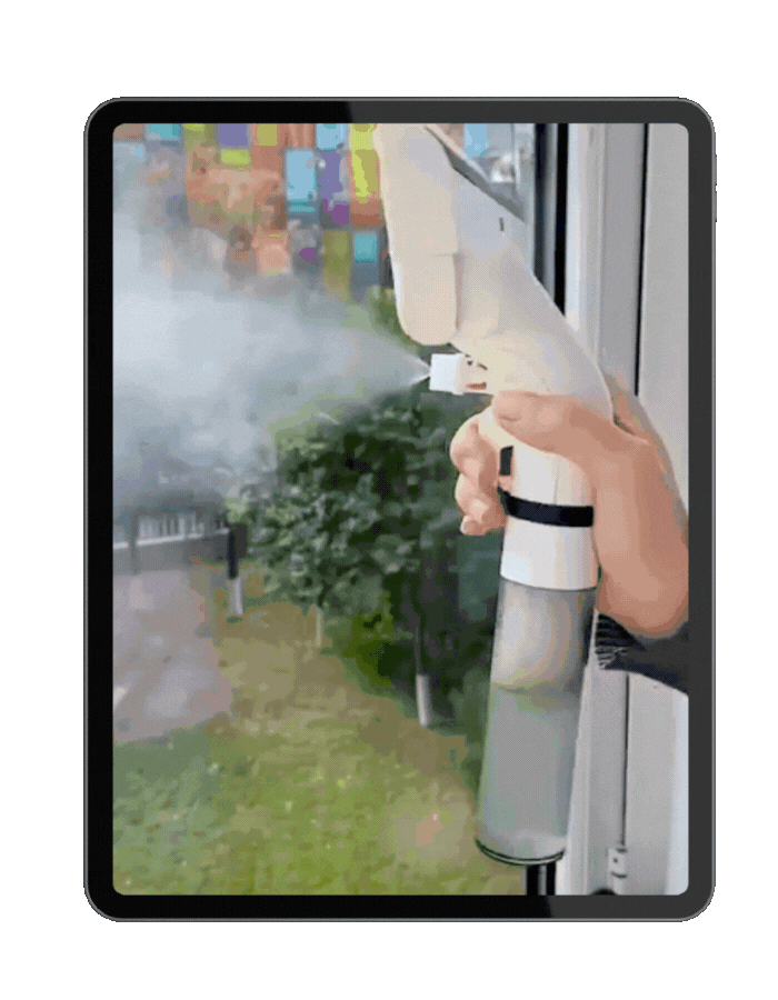 Sprühen sie den glasreiniger ganz einfach per knopfdruck aus dem integrierten behälter. Keine separaten flaschen mehr nötig